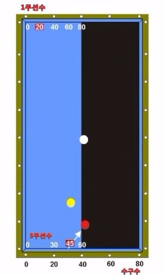 3쿠션 지점이 45입니다.